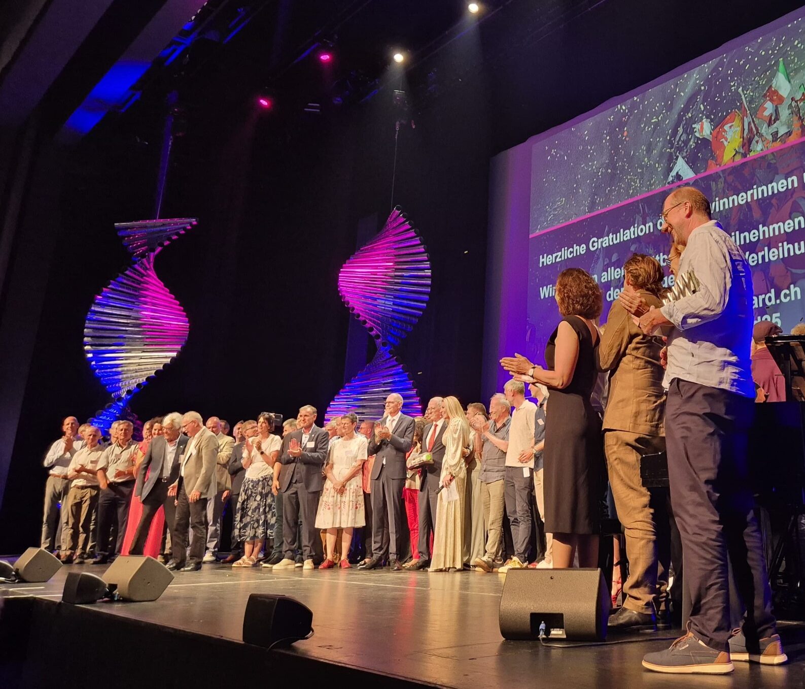 La soirée s’est poursuivie avec une bonne dose d’inspiration: Les projets nominés ont été présentés dans le cadre d’un programme de spectacle de chaque catégorie ont été désignés. Michael Fritsche, président de Industrie suisse de la terre cuite, a remis le prix de la catégorie Recherche. Pour conclure, l’ancien conseiller fédéral Adolf Ogi a rendu hommage à la NLFA en tant que projet du siècle de l’ingénierie suisse.